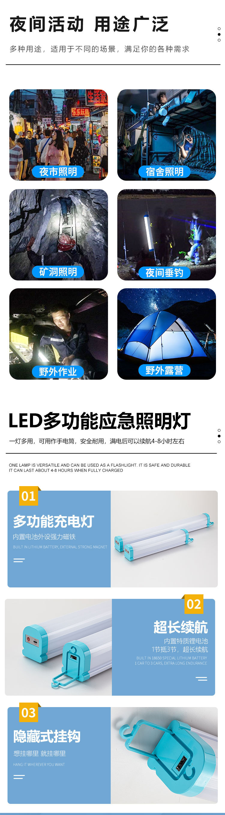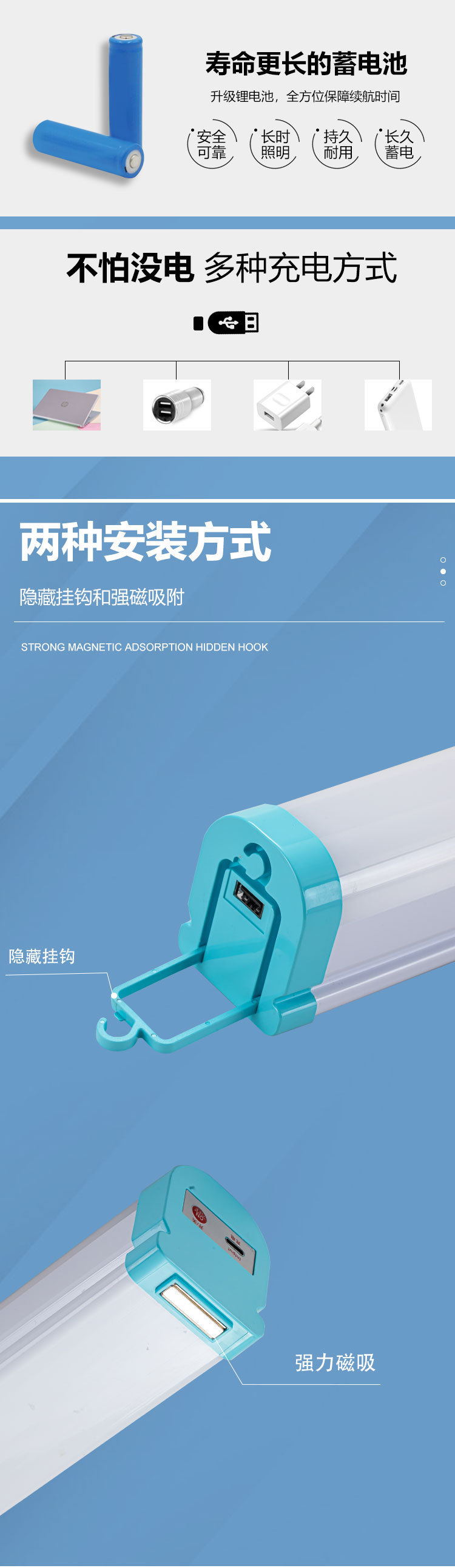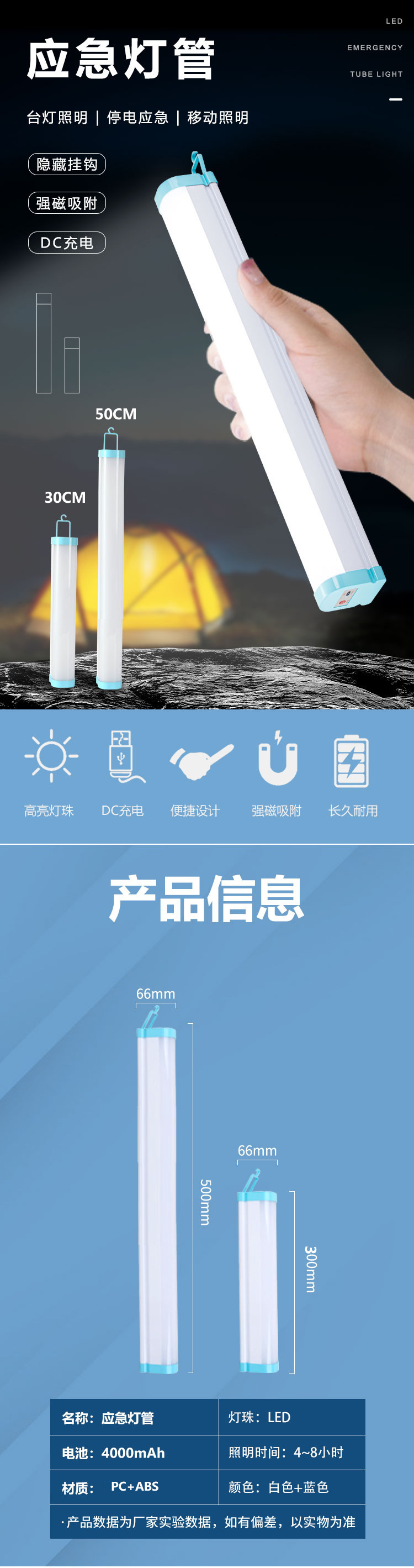 Product Name: LED Rechargeable Emergency Light Tube Outdoor Stall, Night Market Camping Home Hook Fluorescent Lamp USB Magnetic Lamp Tube Warning