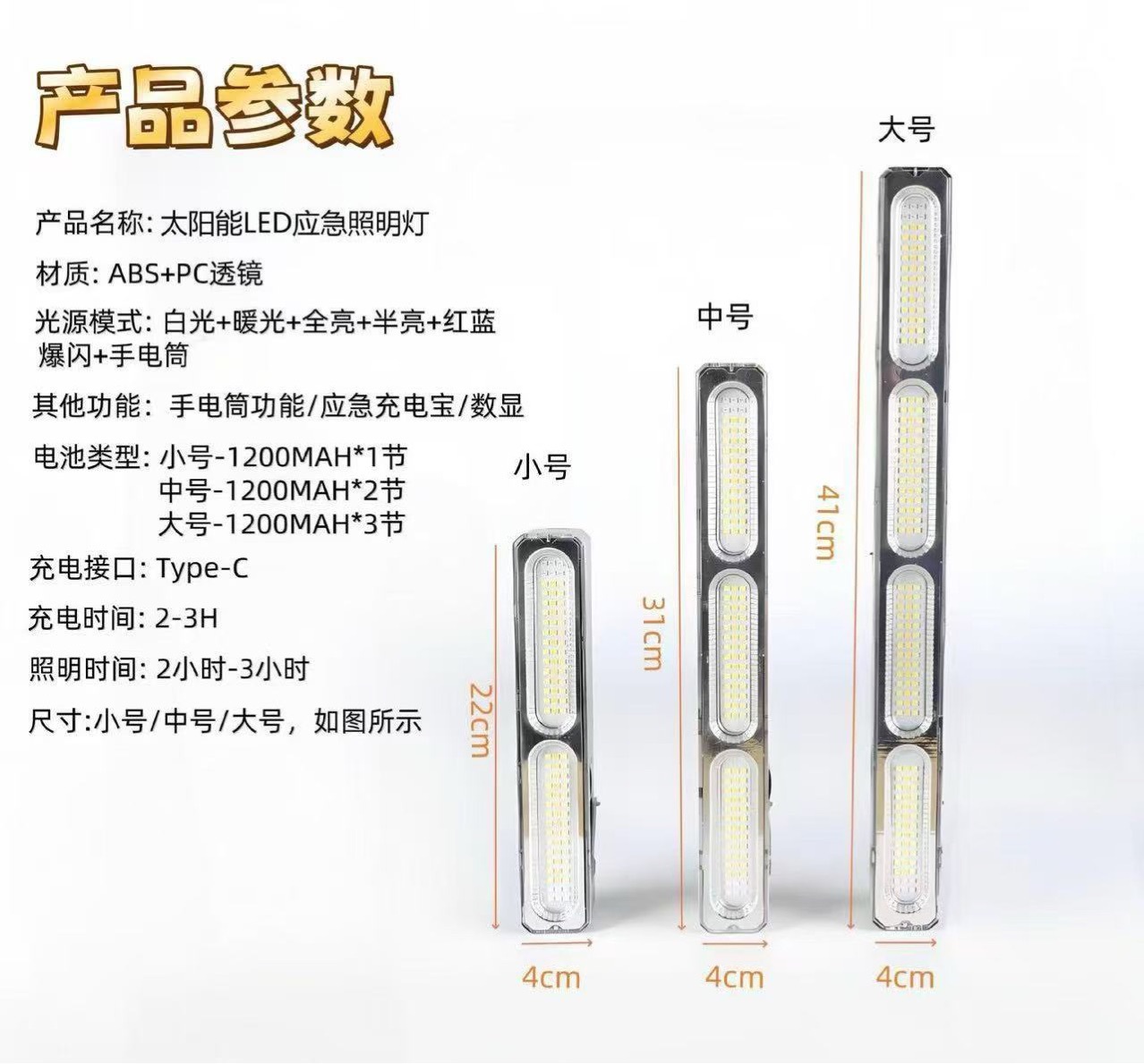 Product Name: Solar LED Emergency Lighting Multifunctional Flashlight Outdoor Camping Light Household Power Outage Lighting Dimming